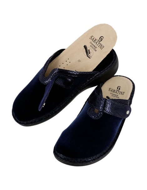 S1717 - Hausschuh aus weichem Stretchmaterial mit herausnehmbarer Innensohle - Aspide/Vellutoelast Blau