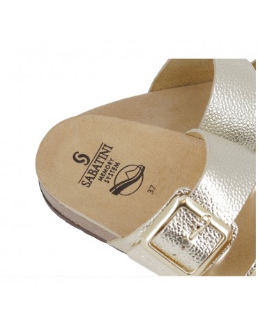 Die Sohle ist nicht nur ästhetisch modern und glamourös, sondern auch besonders leicht und besteht aus Naturkork, dessen Produktionskette kontrolliert und zertifiziert ist, um eine geringe Umweltbelastung zu gewährleisten. Das Profil besteht aus Gummi. Sohlenhöhe: 3,5 cm.