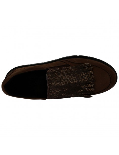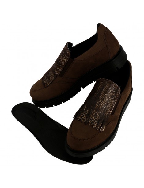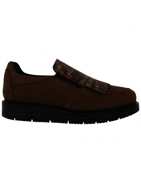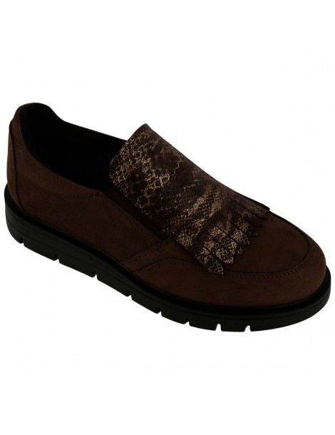 S9720 - Mocassin Chunky en cuir avec frange - Nabuk Tête de Maure