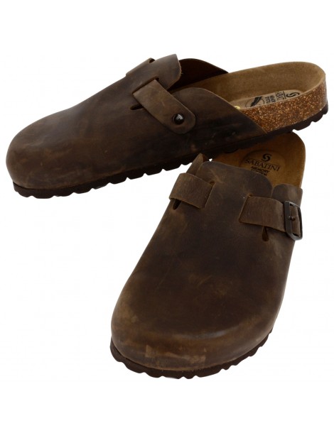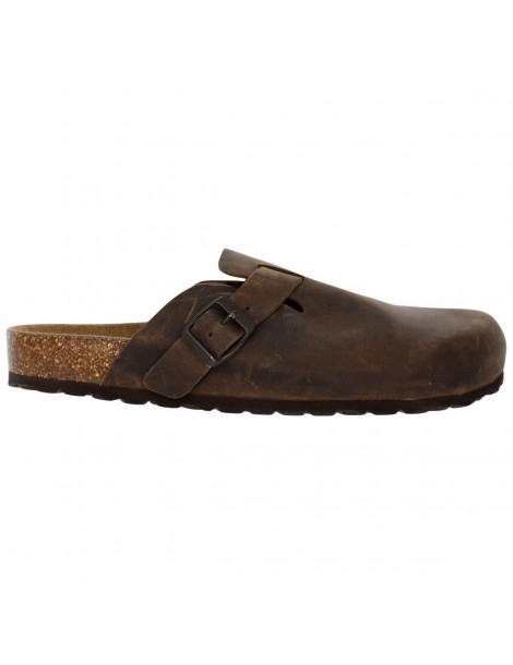 ERRICO 450 Ciabatta in pelle ingrassata, fondo sughero naturale e memory.