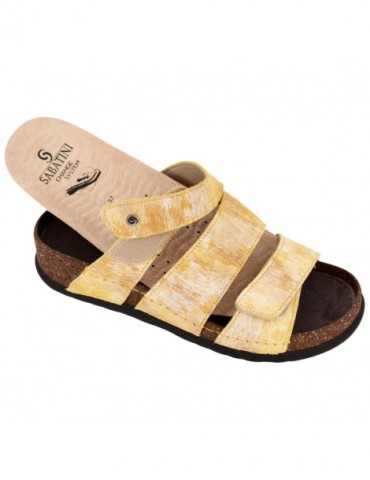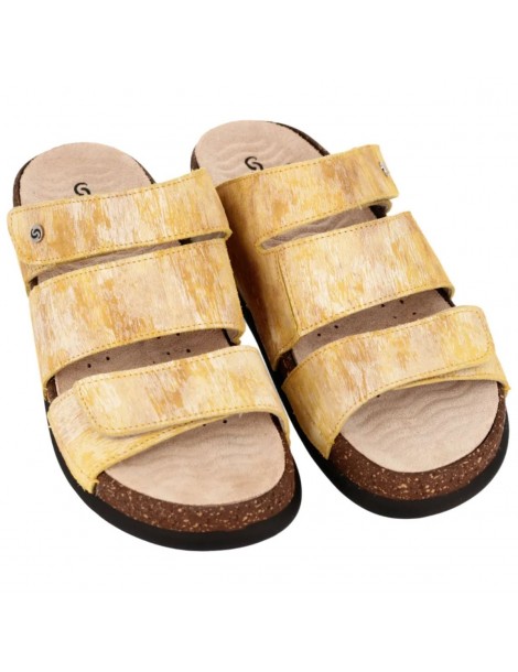 Mule en cuir fabriquée avec des matériaux de la plus haute qualité qui garantissent une douceur et un confort absolus. La tige, avec ses trois bandes, épouse très bien le pied, assurant la stabilité, et les deux bandes Velcro permettent un bon ajustement.