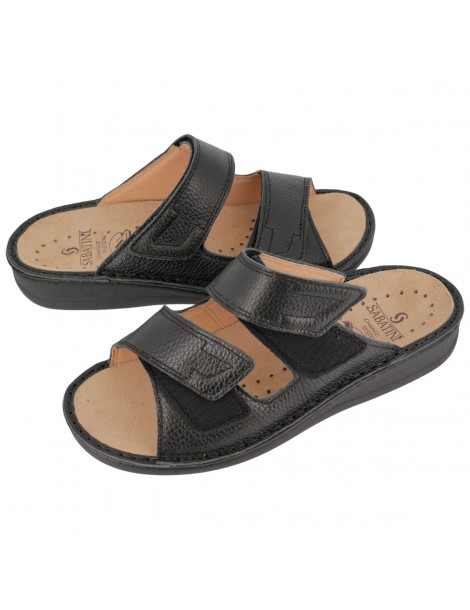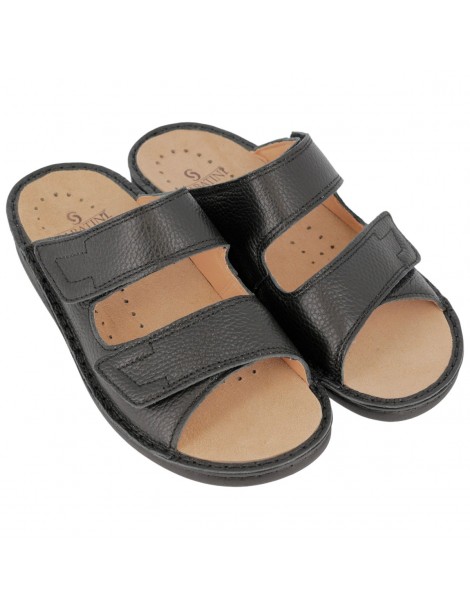 S440 - Mule confort homme, en cuir, réglable, avec semelle intérieure amovible - Cervo Noir