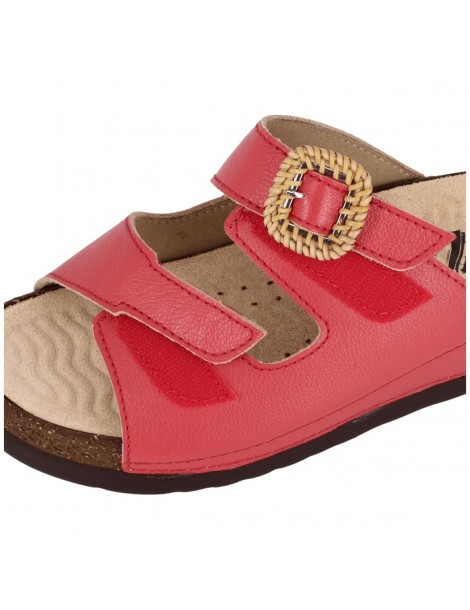 Mule en cuir de la plus haute qualité pour une douceur et un confort absolus. La tige en cuir extra-souple, à la fois souple et résistante, épouse très bien le pied, garantissant ainsi sa stabilité, et les deux bandes velcro permettent un réglage optimal. La boucle en métal et raphia ne sert pas à l'ajustement, qui est possible grâce au velcro, mais donne du caractère et du style à cette chaussure.