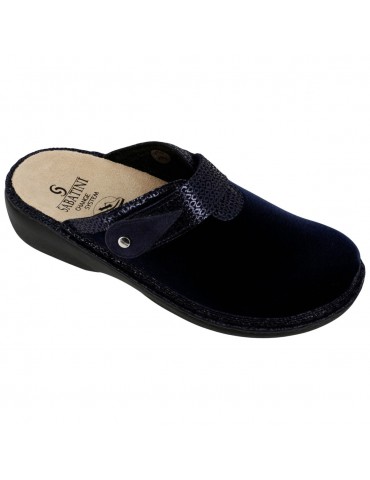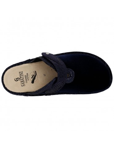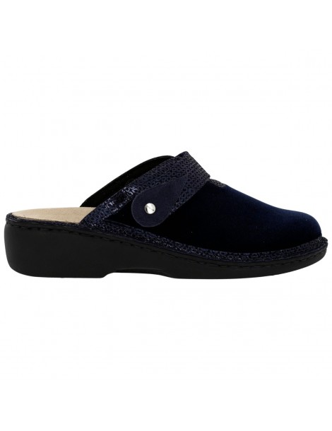 MESSINA S1717 Aspide/Vellutoelast Blu. Ciabatta morbida e avvolgente, ideale per chi soffre di alluce valgo, plantare estraibile, calzata ampia e comoda.